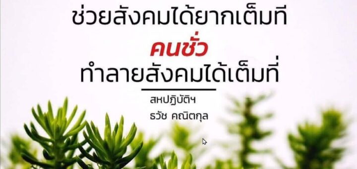 ประกายคารม คำคมธรรมะ February 26, 2023 by saha-admin · Published February 26, 2023 · Last modified March 4, 2023 ประกายคารม คำคมธรรมะ “คนดี ช่วยสังคมได้ยากเต็มที คนชั่ว ทำลายสังคมได้เต็มที่” – ธวัช คณิตกุล